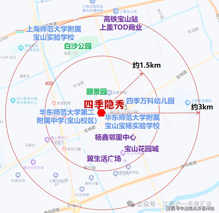 步行可达招商花园城、超级合生汇(已签约)等商业体,毗邻华东师范大学第二附属中学(宝山校区)等优质教育资源,复旦附属中山医院提供健康保障。