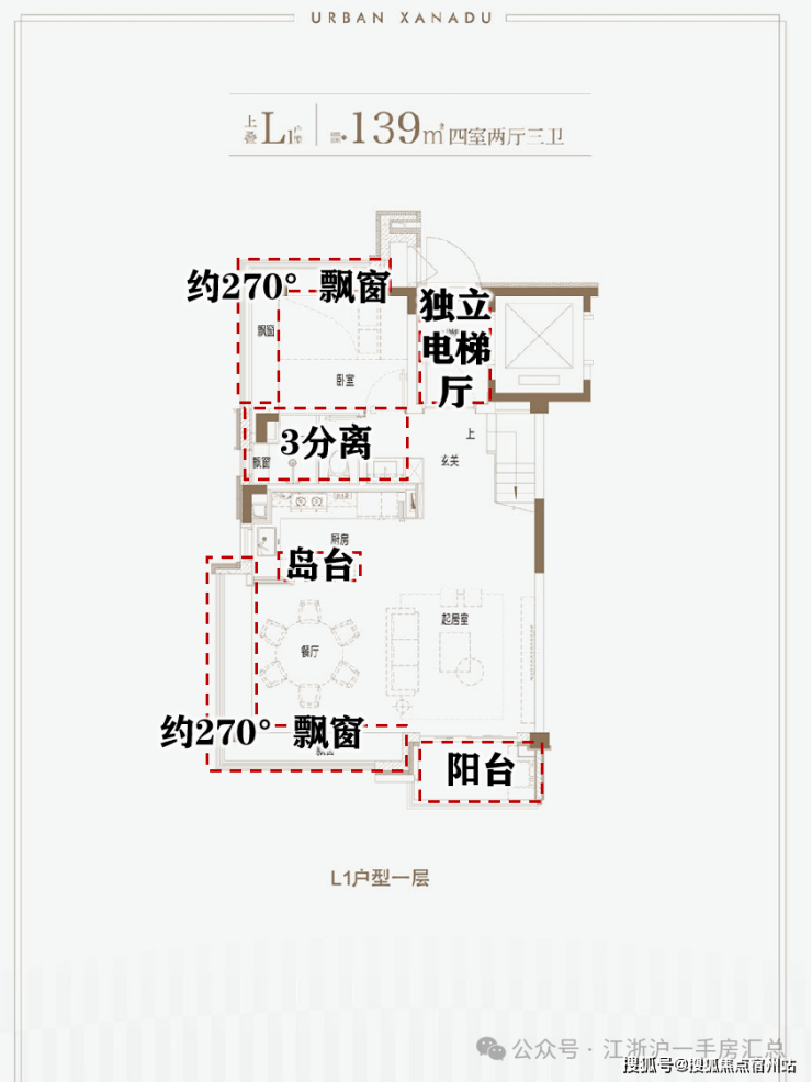 · 约7米大横厅+约270°转角飘窗,引景入室无遮挡
