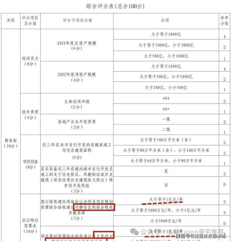 在意向方遴选条件上, 除了常规的对企业的总资产规模、净资产规模、主体信用,房地产开发资质等做了要求之外: