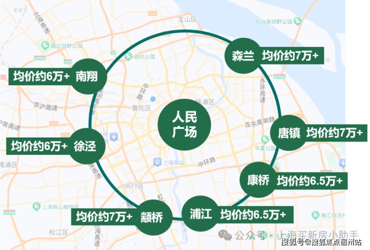 以 外环外置业热土 为例,南翔、徐泾等地单价6万+就已经是入门级别了,更不用提均价7万+的颛桥、唐镇、森兰等地。