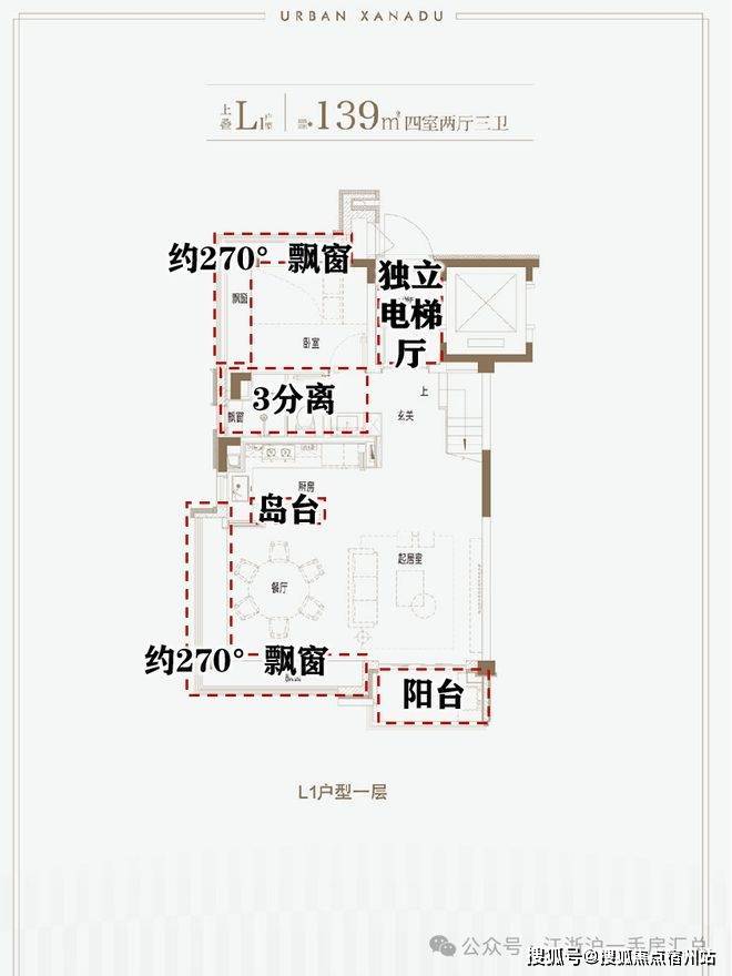 户型打造了4个约270°全景飘窗,其中3个卧室和客餐厅都配备了全景飘窗,✅✅四季隐秀售楼处电话:400 - 882 - 4258✅✅整体敞亮不压抑。