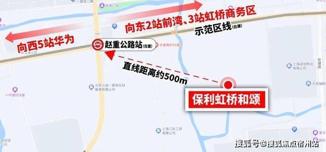 保利虹桥和颂就是当下该级别少有的真轨交房,直线距离示范区线(在建)赵重公路站仅约500米。