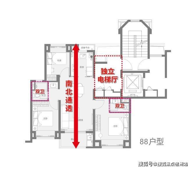 ✔独立电梯厅(除建面75㎡)!