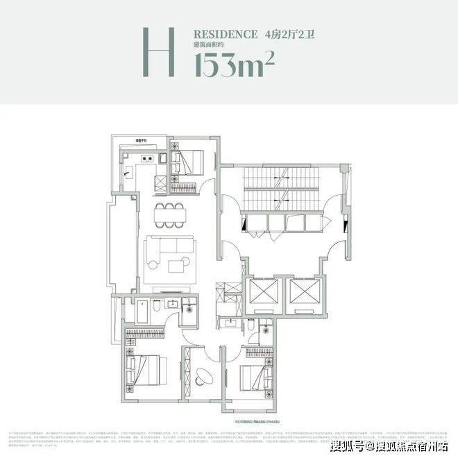 南侧三开间全明布局,实现居住平权,每间卧室都能享有充足采光与舒适尺度;