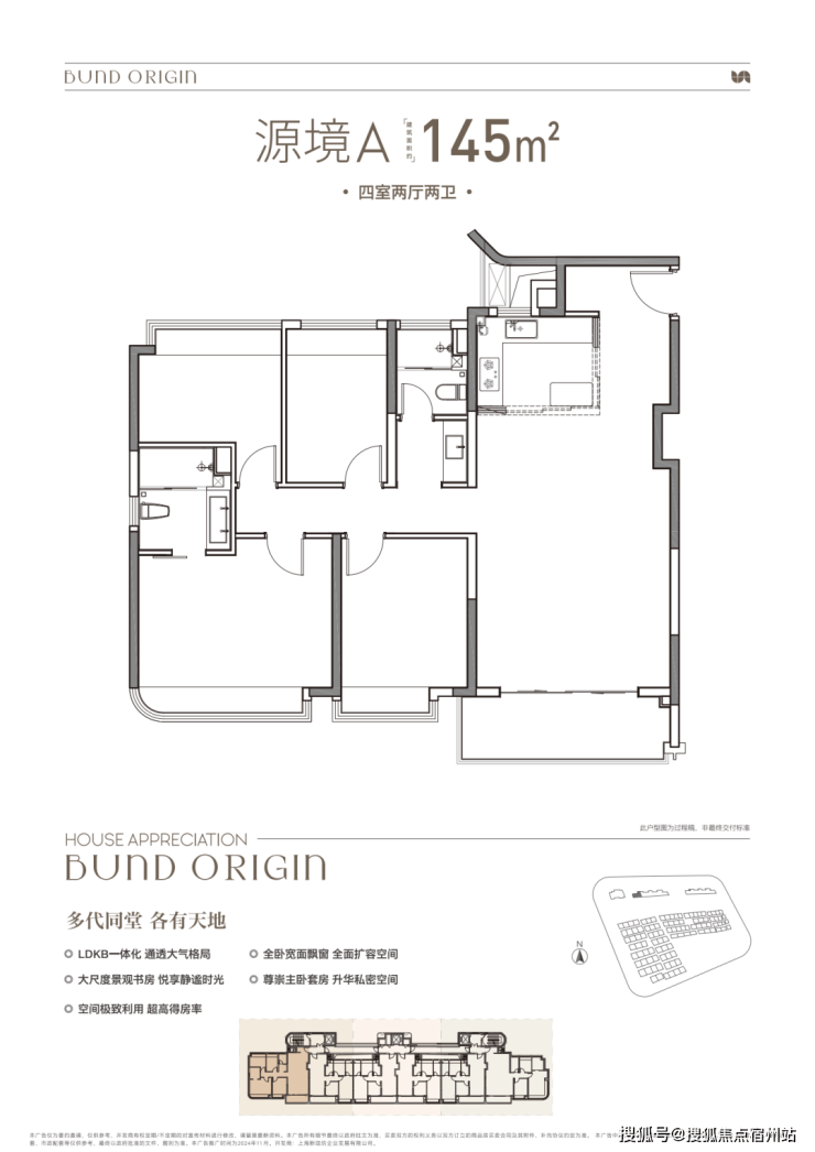 4房2厅2卫格局,三开间朝南+LDKB一体化+全卧室带飘窗+主卧套房设计+动静分离,居住功能性更强。