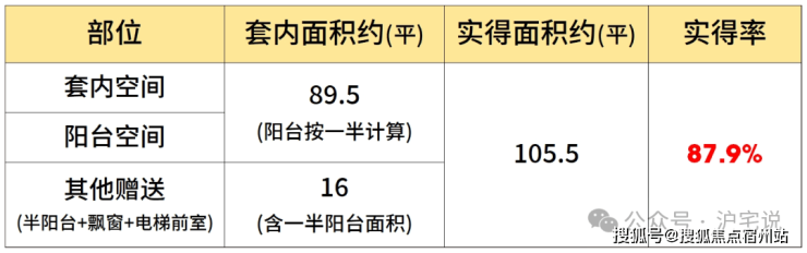 该户型大量的飘窗+双阳台设计,保证了每个功能间的通风采光,也提升了户型的实得率。经过专业建筑师测算,假设阳台全部封闭的情况下,项目建面约120㎡户型实得面积约105.5㎡,实得率约88%。(该实得率数据根据实得面积预估计算所得,仅供参考,不作为置业依据。最终得房率以购房合同为准)