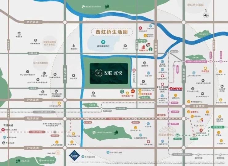 项目位于大虹桥西板块青浦华新。现有成熟配套,学校、商业、银行、餐饮、医院、公园相对集中,是兼顾舒适居住和便利交通的区域。