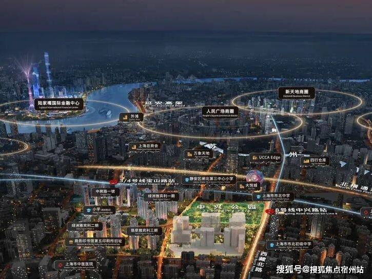 生态: 项目南侧毗邻约3.5万m²中兴公园,苏河湾一河两岸的城市滨水设计等,漫步上海浓荫深处。