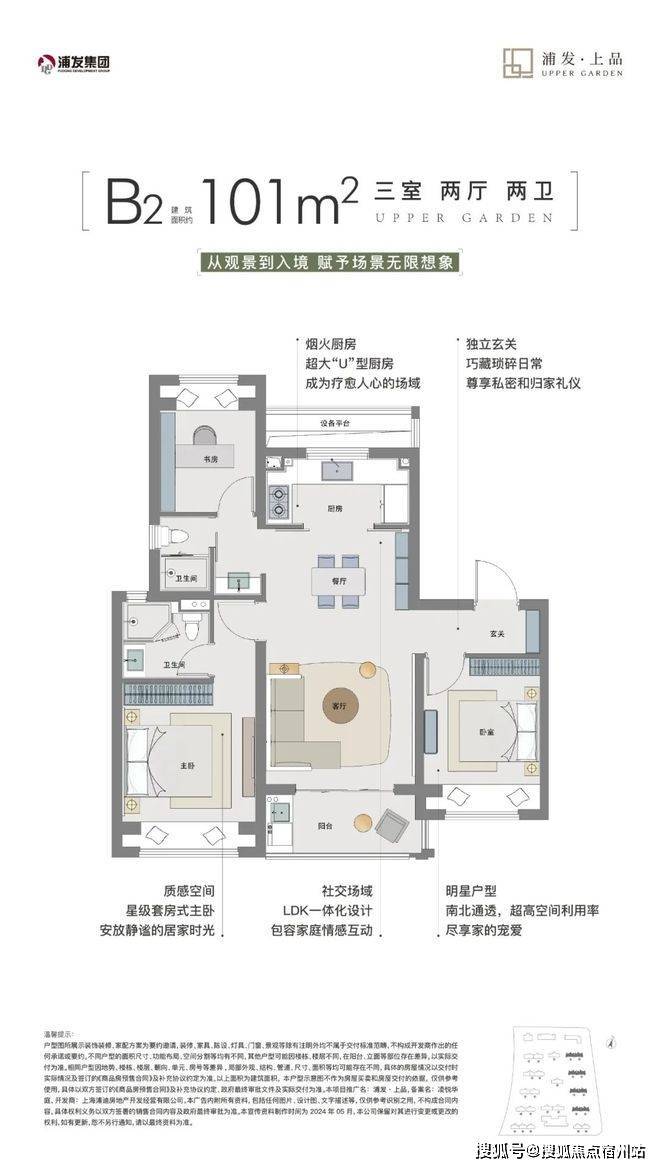 为了让业主体验到更真实的尺寸,✅✅浦发上品售楼处电话:400 - 8824 - 258✅✅浦发上品将超高空间利用率、且南北通透的101㎡B2户型做了实景交付样板间,是浦发上品对生活空间的表达,切身感触无连廊户型尺寸、格局,体验全成品住区生活,拥有更真切的实景生活体验。