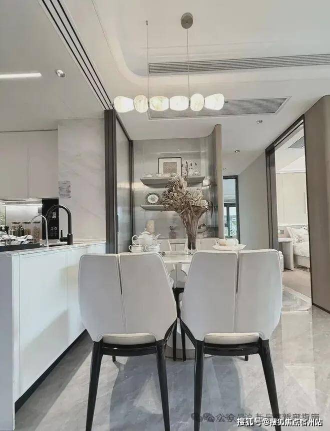 入户门厅以弧形悬浮顶棚为特色,为业主带来柔和温润的归家关怀,让归家的每一步都充满舒适与惬意。