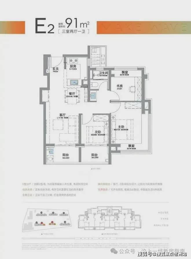 建面约127㎡三房两厅两卫,该户型最大的亮点是有着比肩豪宅的南北三阳台黄金布局,这是2025年之后,松江首个三阳台户型。