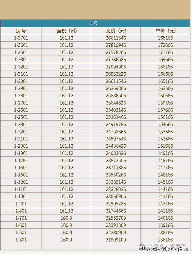 向上滑动阅览一房一价表