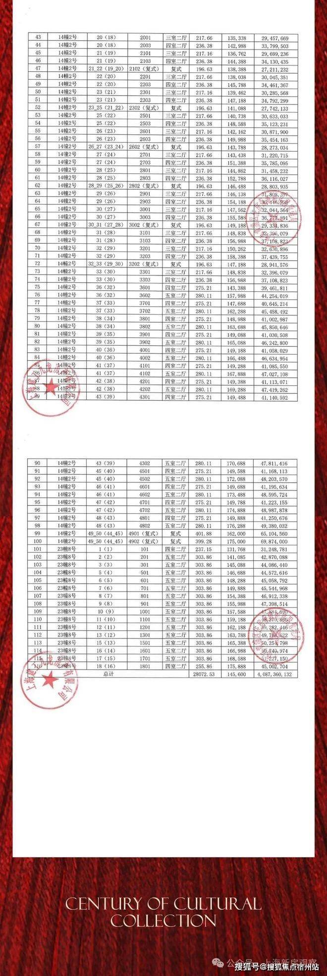 一房一价表如下: