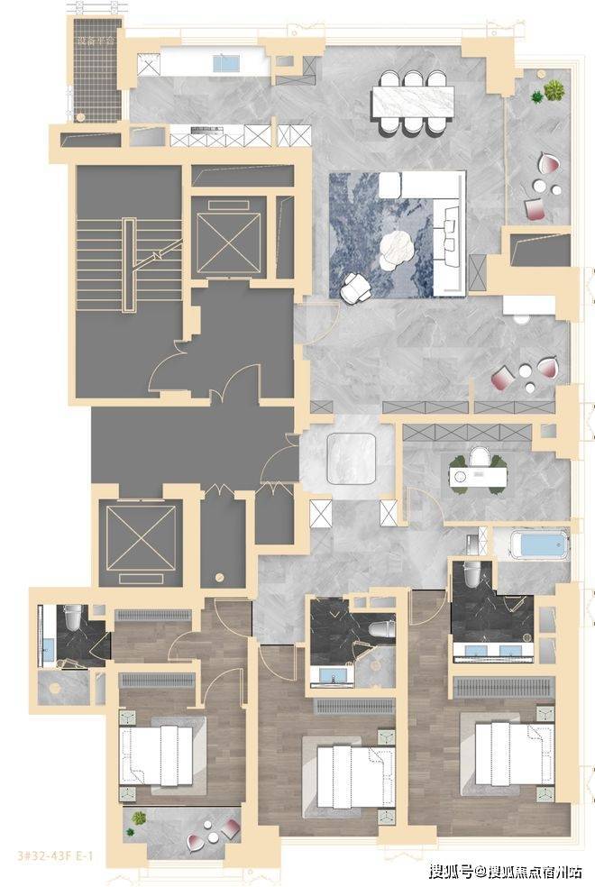 项目中心坐落的中央景观规模约3000㎡,周边环绕着四座建筑,其中三幢为超高层设计,整体布局高低兼顾,启承有序,开阖有度,塑造城市云端生活新方式。