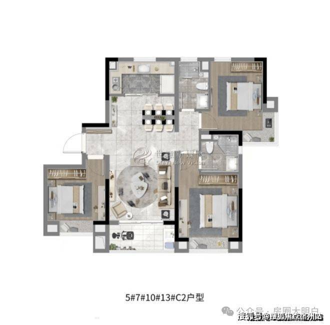 C2户型约110㎡户型图▼售楼处电话:400-8266-670(24小时贵宾热线)