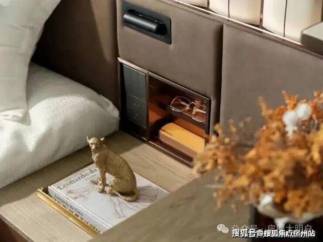 卧室透过温和质朴的肌理营造气质与温度,营造极致的舒适感和悦己氛围。床尾的音乐角,播放着珍藏许久的唱片,灵动地展现出居住者的品味格调和生活状态的自如。