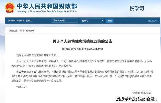 2026年新政后:满2年,增值税直接归零!只需缴纳契税5万。