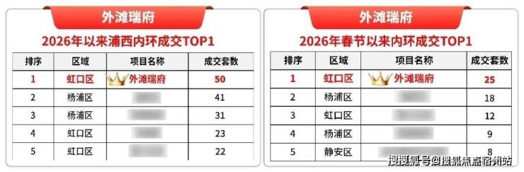 这是项目官方发布的海报,外滩瑞府荣膺 2026年2月虹口区新房三冠王 。