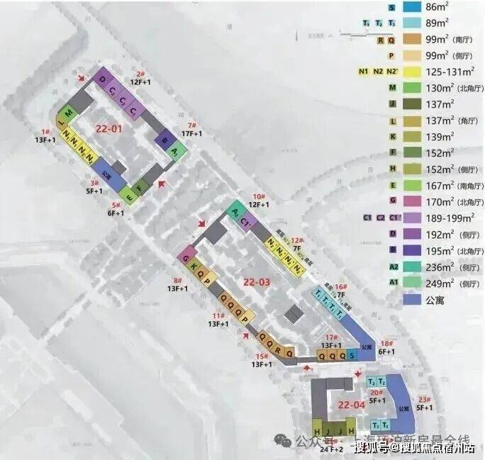 22-01地块占地面积1.1万平方米,总建筑面积5万平方米,包括4栋住宅楼、2栋商业;22-03地块占地面积1.6万平方米,总建筑面积6.7万平方米,包括7栋住宅楼、2栋商业;22-04地块占地面积0.9万平方米,总建筑面积3.8万平方米,包括3栋住宅楼、2栋商业。