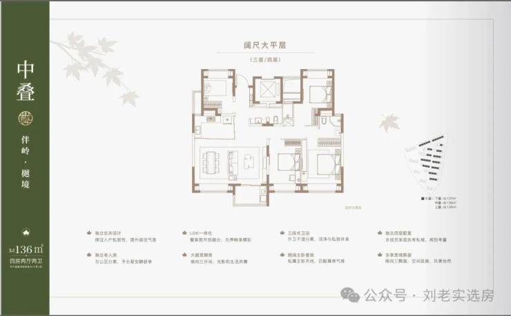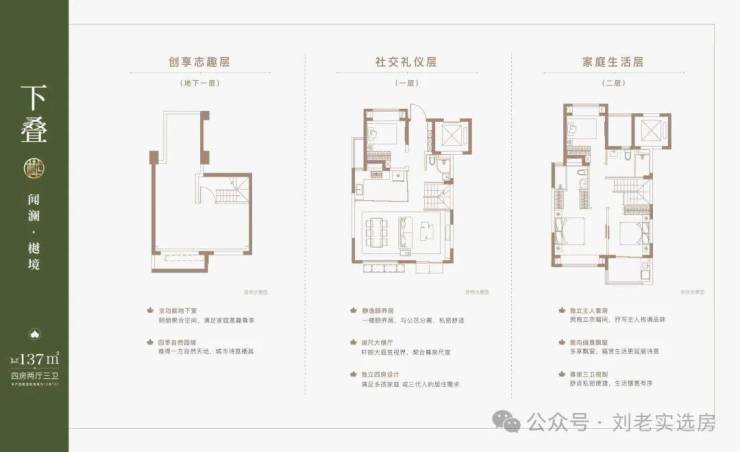 建面约137㎡下叠,四房两厅三卫全能格局,非常适合二娃家庭以及三代同堂。