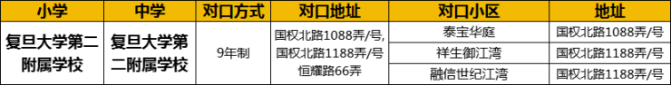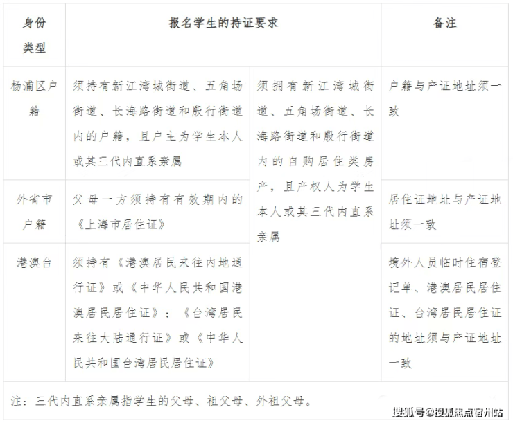 杨浦区户籍:须拥有新江湾城街道、五角场街道、长海路街道、殷行街道内的户籍,且户主为学生本人或三代内直系亲属+须拥有上述街道自购居住类房产,且产权人为学生本人或三代内直系亲属+居住证地址与房产地址须一致。