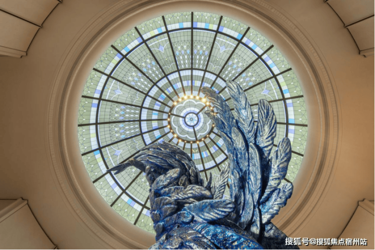 彩玻穹顶之下,是一尊名为“百羽栖澜”的艺术雕塑