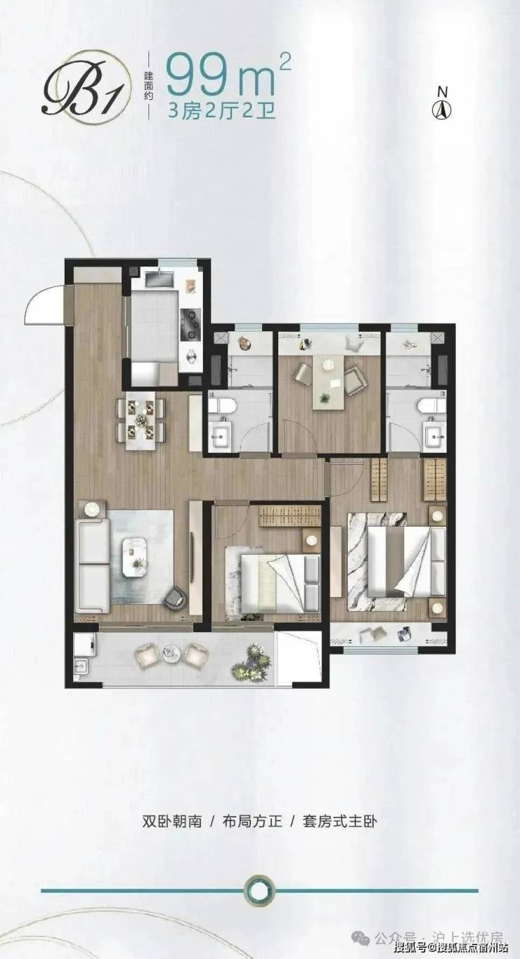 建面约89㎡做3房,功能性上就占尽先机,没想到项目还有1.5卫配置, 主卧升级套房,真正实现一步到位!