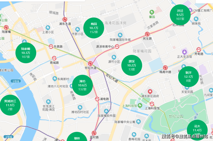 交通配套:四轨交汇2/6/9号线,小区距9号线商城路站600米,距2号线东昌路站800米,6号线世纪大道站约1.2公里,另外,距离最近的地铁站点是19号线(在建)潍坊路站仅300米,近内环高架,交通出行便捷。(数据来源百度地图)