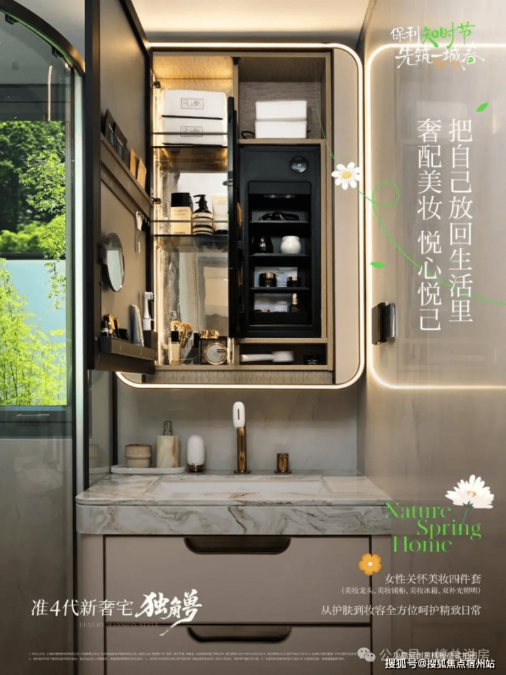 臻选国际一线装标,百项精工细节,并引入豪宅奢配的"七衡系统"(衡温、衡氧、衡净、衡静、衡光、衡洁、衡久),24小时守护全家健康与静谧。同时,更以「她享主义」,精配美妆4件套(美妆龙头、美妆镜柜、美妆冰箱、双补光照明),打造奢适有度的生活场景。