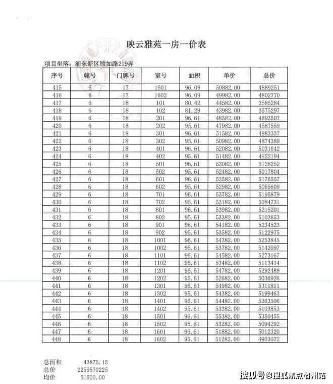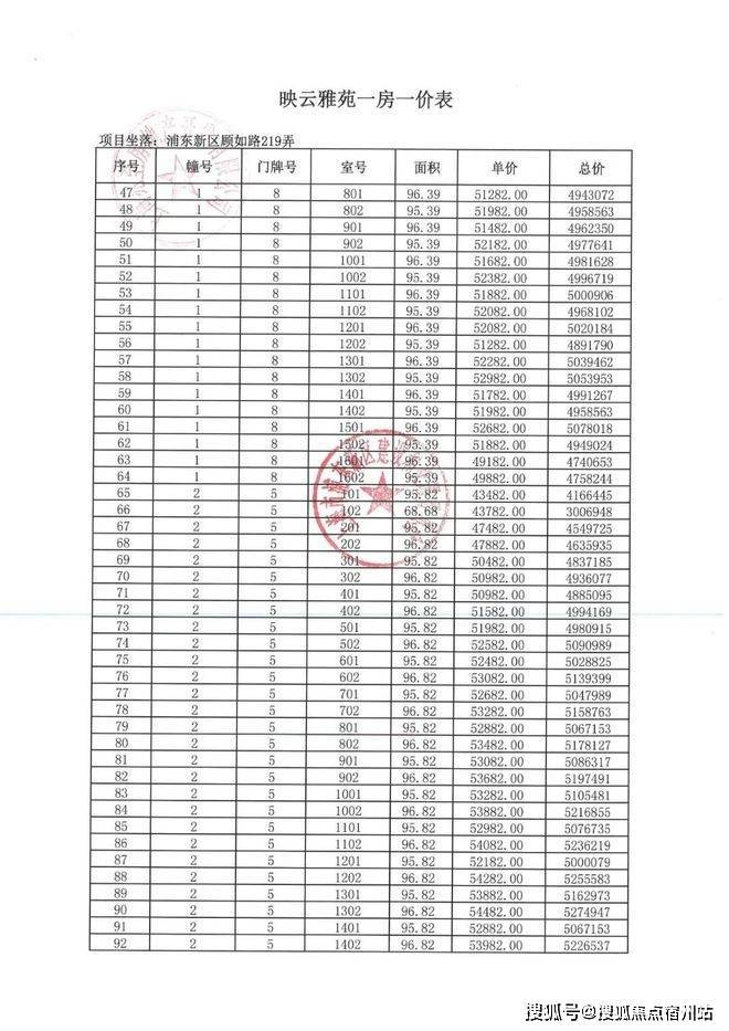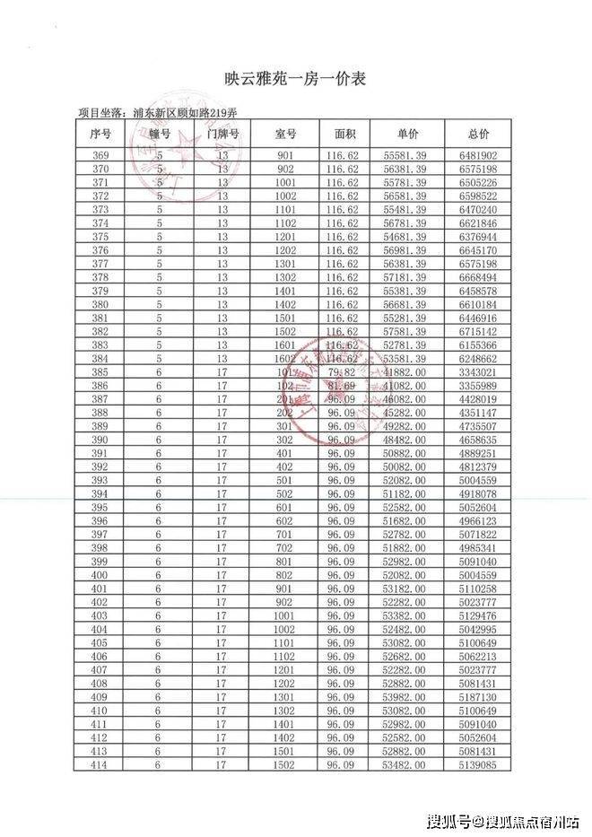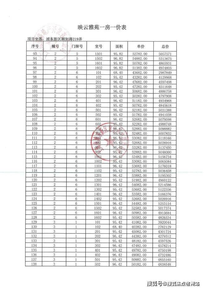 一房一价表