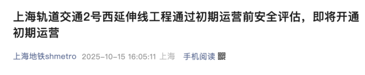 上海轨道交通2号线西延伸工程即将开通初期运营!