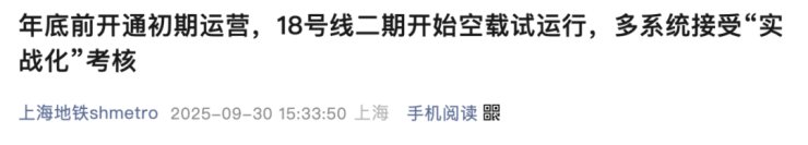 2025年9月30日,18号线二期全线在完成了试运行专项科目演练后,正式进入试运行第二阶段: “跑图”演练。这是18号线二期项目从“土建攻坚”经由“机电安装与系统联调联试”迈向“开通初期运营”的里程碑节点,为18号线二期实现高标准、高品质开通运营奠定了坚实基础。