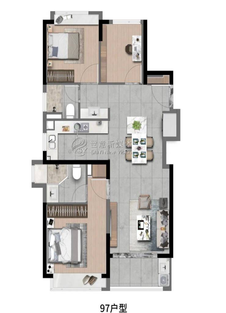 高层建面约97㎡3房2厅2卫