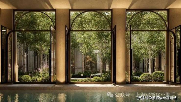 NO.8 花园泳池 波光潋滟处,拱形门窗外花影摇曳,一池春水将四季芳菲溶成流动的油画。