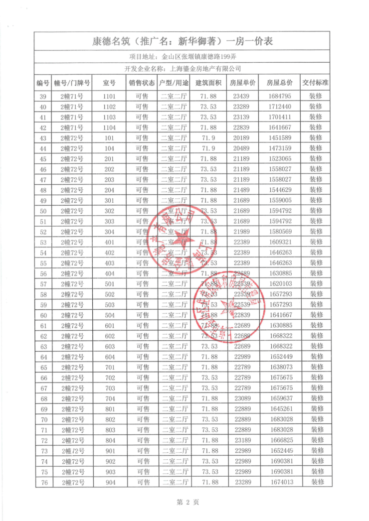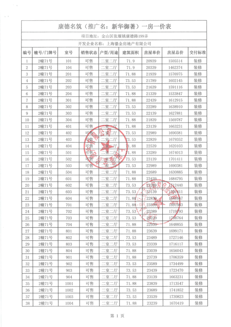 一房一价表如下: