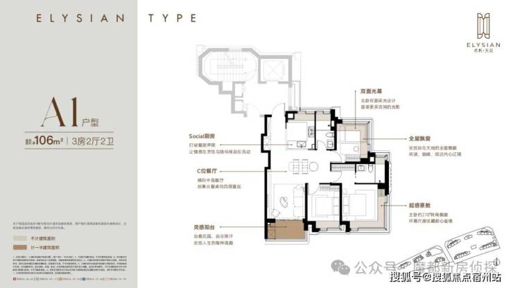 每个户型至少6个飘窗,边套更是约270°转角瞰景。