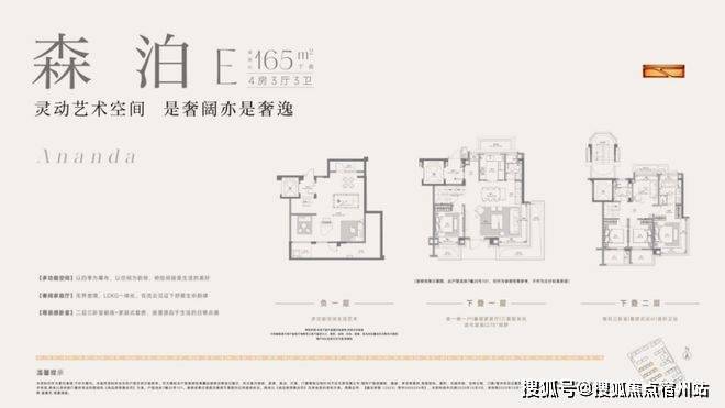建面约160㎡上叠预计使用率最高约145%、约8.5m横厅双阳台双露台、南北通透主卧套房、阳光半坡顶楼。(注:非得房率,最终房屋得房率以实测报告为准)·建面约165㎡中叠 | 扩尺面宽的适逸人生·建面约165㎡下叠 | 通透采光的垂直空间革命
