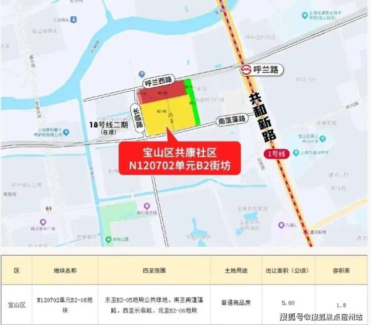 这宗编号为宝山区N120702单元B2-08的地块出让面积约5.6公顷,规划建筑面积超过10万平方米,容积率为1.8。这也是该板块时隔20年再次推出的市场化住宅用地。