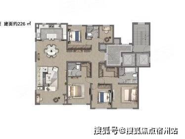 226㎡ 终极改善五房 :总价 1890-2114 万, 私梯入户 + 独立玄关 ,270° 转角阳台直面中央绿地,五房三卫布局,双套房设计,配备独立家政间、储物间与中西双厨,极致空间尺度,匹配塔尖人居需求。