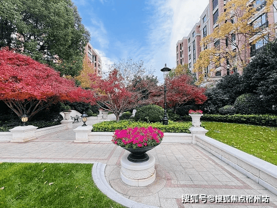 社区内部绿化率高达 35%-38% ,采用 全冠移植 成年香樟、银杏、紫薇等名贵绿植,打造 “ 两轴三庭五院 ” 立体园林,搭配下沉式庭院、锦鲤池、罗汉松造景,实现 “四季常绿、步步有景”,推窗即揽绿意,鲜氧时刻环绕。