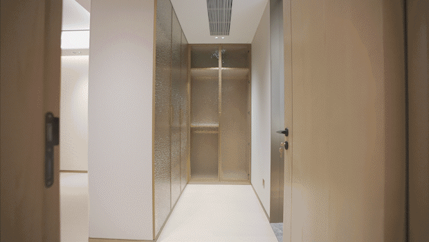 入户玄关的设计,将尊崇感,私密性拉满,还额外增加了更多的收纳空间。