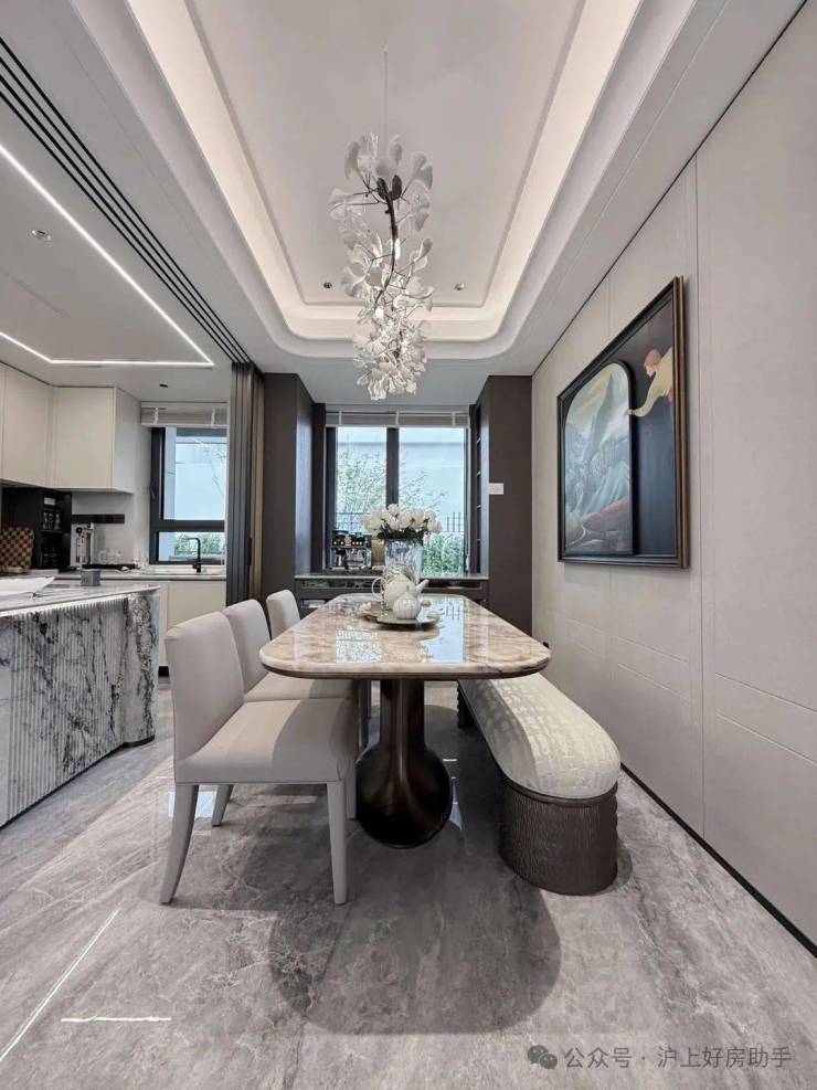 【海上·清和玺】希望业主的每一次归家,都能有属于自己的社交空间。整个前厅的接待空间不是一个过渡空间,而是一个真正为归家营造惬意分享的生活场。