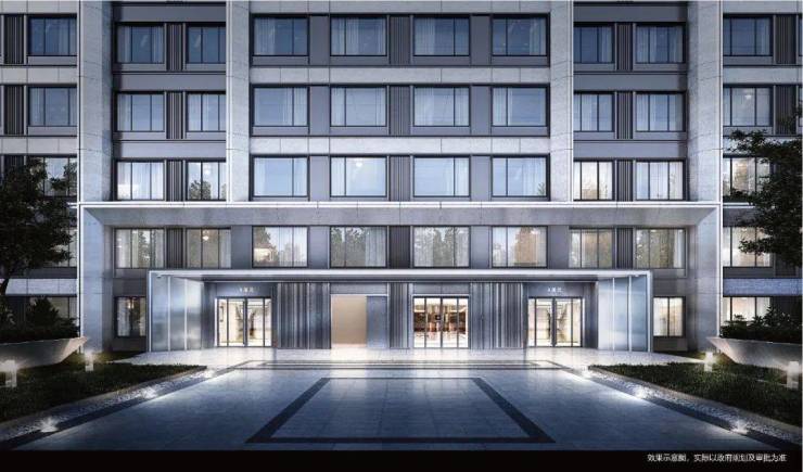 在门庭外,辅以两侧具有仪式感的跳泉水景,将建筑的圆弧美感与自然水景相合,共同构成海上·清和玺“贵雅清和”的城市界面。