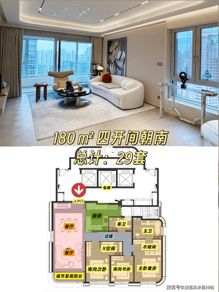 388㎡四房(顶奢标杆):270°环幕江景,客餐厅超60㎡、主卧套房达24㎡;三梯两户+独立电梯门厅,预留保姆通道,总价6160-8580万,适合顶级资产配置。