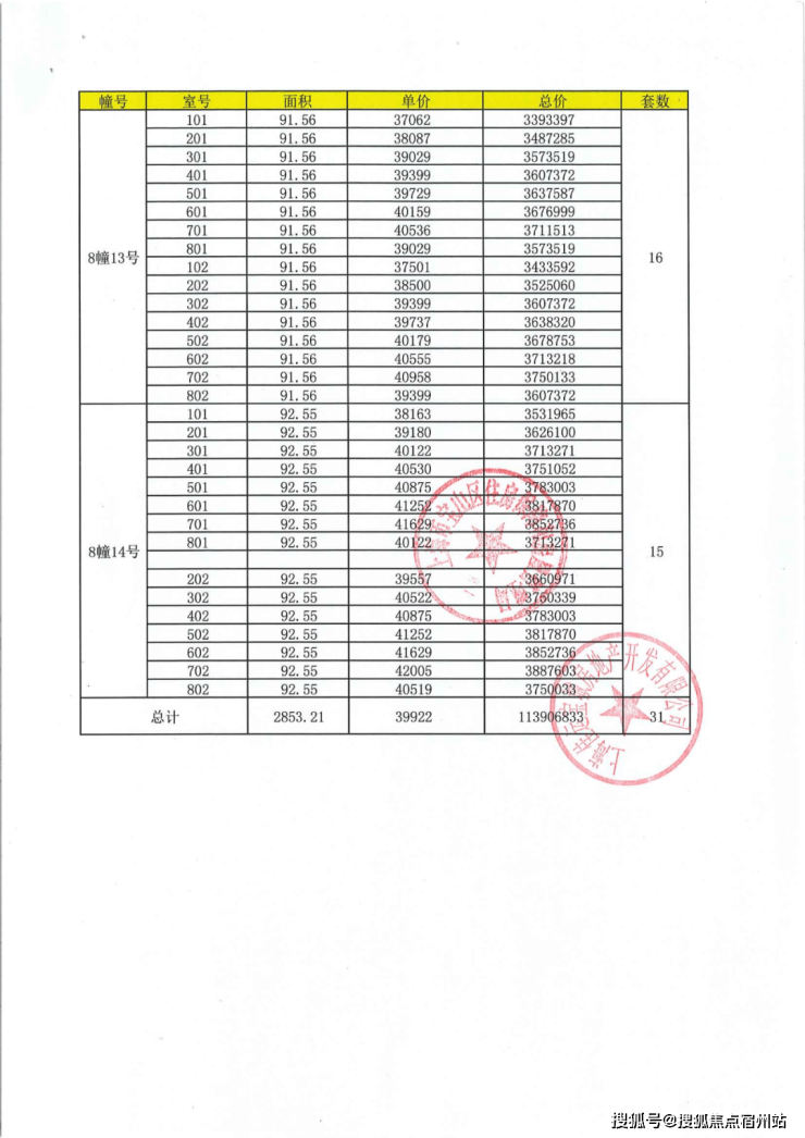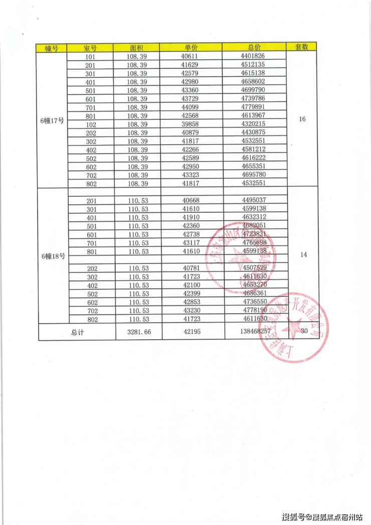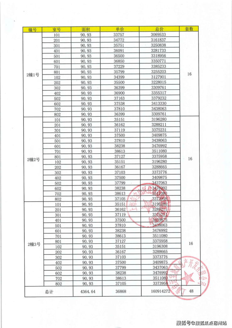 上期一房一价表:
