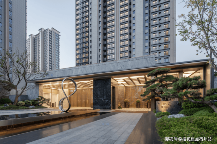 现代国际的酒店式落客,让归家仪式感拉满。门口水景矗立一座艺术雕塑,据说是艺术家朱峰的著名作品,仪式感之上又多添了一份独特的艺术性。