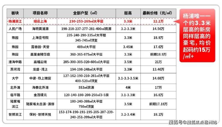 而同样层高的顶级豪宅们,起码都在约15万+的房价水平,但缦云上海的均价仅约12.2万/㎡。