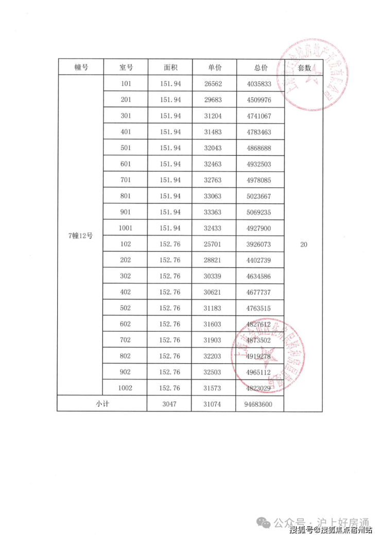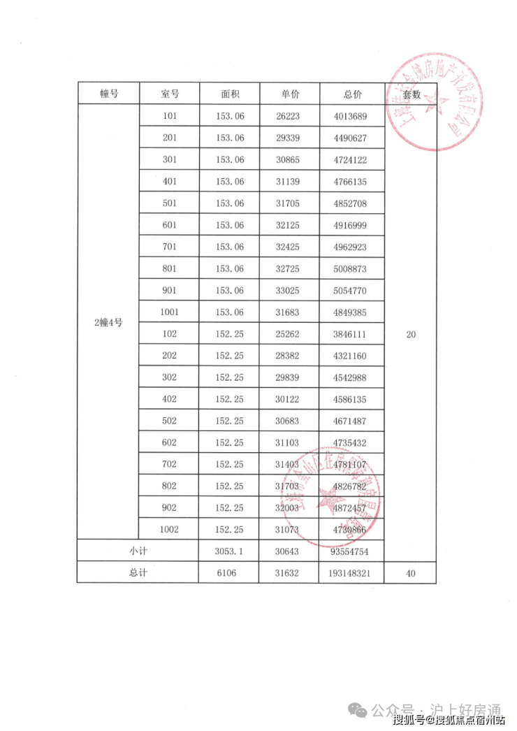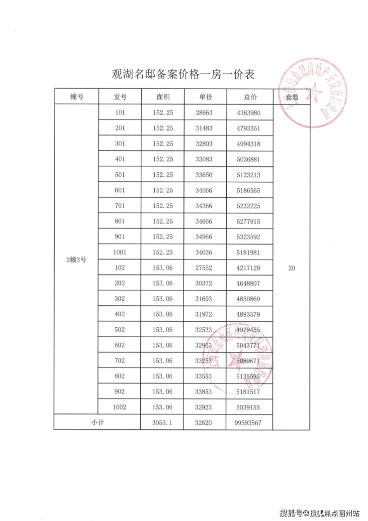 项目一房一价表