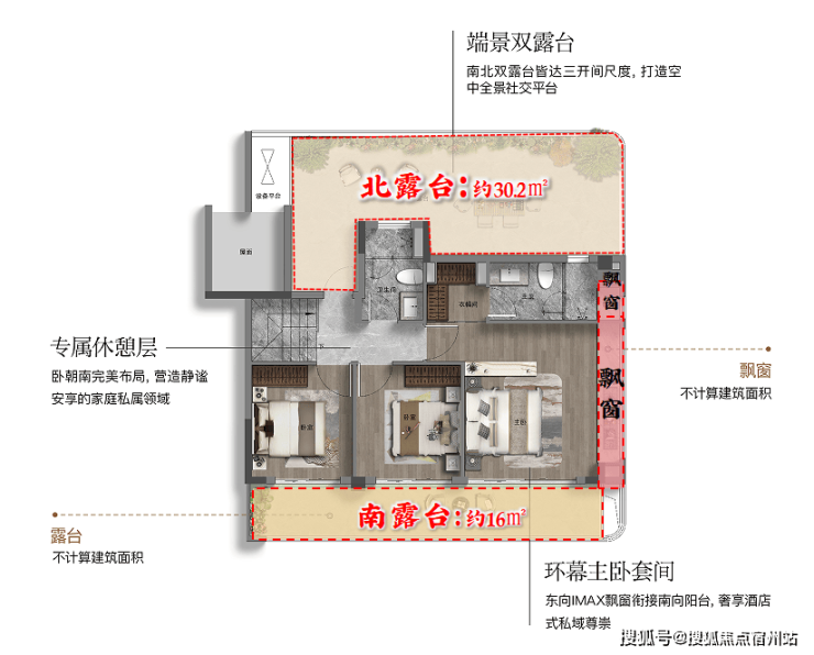 光阳台面积就有约16㎡。