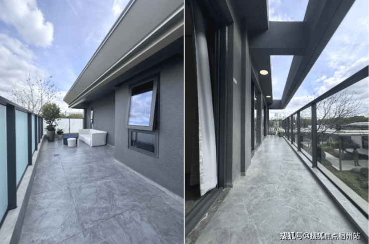 北侧的露台部分,则做了一些局部外挑,空间的尺度感更是放大到极致!